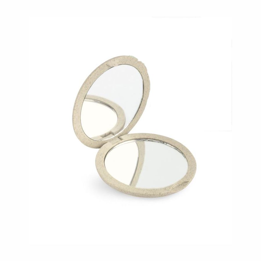 Dois espelhos numa única peça, um normal e o outro de aumento x4. É muito confortável levá-lo na bolsa para retocar-se em qualquer lugar e momento.