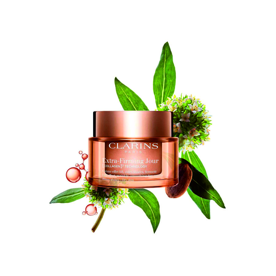A Investigação Clarins cria um cuidado de firmeza cujos poderosos princípios ativos ajudam a aumentar as reservas de colagénio* para uma pele mais firme em 7 dias.** Um creme de dia para firmeza da nova geração.